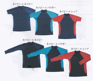 ・ベース部はラバージャージにより保温・蓄熱性に優れ、袖・襟・脇部はオペロンジャージによりストレスが無く動きやすい! ・急な雨や肌寒い日に最適! ・ゴム部は風を通さず、保温性に優れています! UVカット率 ベース部:UVカット率100% 袖・襟・脇部:UVカット率94%以上 ベース部:表・裏ナイロンストレッチジャージ&クロロプレーンラバー 袖・襟・脇部:ナイロン83% ポリウレタン17% ウエットスーツ・ドライスーツのインナーとしても、動きやすく保温性抜群!! サイズ 110(3,900円税別) 120(3,900円税別) 130(3,900円税別) 140(4,500円税別) 150(4,500円税別) カラー ネイビー×ネイビー ネイビー×パウダー ネイビー×レッド 注意 本体の1.5mmクロロプレーンラバーは、保温・蓄熱性が高いため、炎天下または暑い場所で水に入らずに着用されますと熱中症などになる危険性があります。