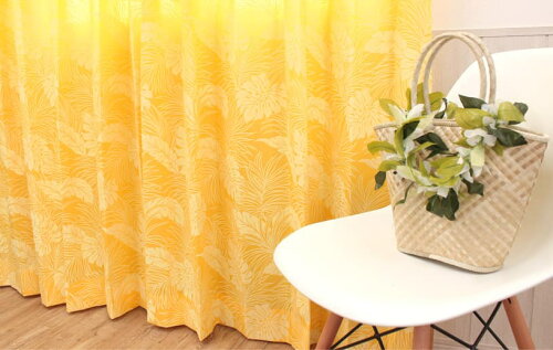 プルメリアやイリマのお花のようにかわいらしく華やかな黄色のカーテンです。
